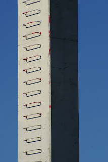 I had to travel for work this week and saw so many lines to take pictures of...and since I was working, had no time to take them. So, this is from my hotel room window in Richland, WA. I thought it was an interesting structure - I like the orb and the area underneath it that breaks apart in a jagged rhythm. I wish I'd had more time to play with the shot - the sky looks a little washed out to me, though it was a hazy morning. I took this with my Canon Rebel XTi, f/22, ISO 100, no white balance correction.